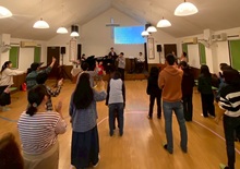 秋の成長感謝合同礼拝が開催されました。 もはや定番となった『ユース・Jキッズ』スタイルで、今年も大人も一緒に賛美やダンスで主をほめたたえました。ゲームはチームごとに分かれて、お題に対して皆が連想しそうな色を当てる『ヒトイロゲーム』、賛美を聞いて歌詞の一部が書かれたカードを探し出す”賛美版”かるた、その名も『賛美狩歌』など今年も趣向に富んでおり大盛り上がり! また、今回は特別企画としてカップラーメン交換会が行われ、各自持ち寄ったカップラーメンの中から、お気に入りのカップラーメンを見つけ、それを共に食しつつ交わりの時をもちました。