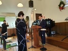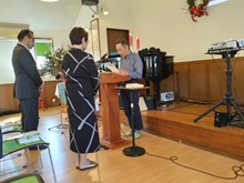 2025年12月7日(日) 按手式 戻る 本日は礼拝後に当教会の按手式が行われました。教団按手礼委員である岡崎新太郎兄、廣川和行兄の司式により、3年間のライセンス期間を修了した岩田みはる姉、片桐勝巳兄に按手礼が授与されました。