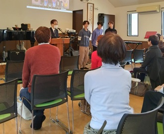 2026年1月4日(日)教会成人式 戻る 本日は礼拝後に教会成人式が行われました。今年は3名の方がいらっしゃいました。いつもユース・Jキッズ礼拝にで共に良い交わりの時をもち、イベント等では、司会や奏楽の奉仕を捧げています。幼いころから教会に集い、共に育ってきた兄弟の成人を、今日このようにして祝えたこと感謝です。今まで導いて下さった神様が、これから先の歩みも共にいて下さいますように。